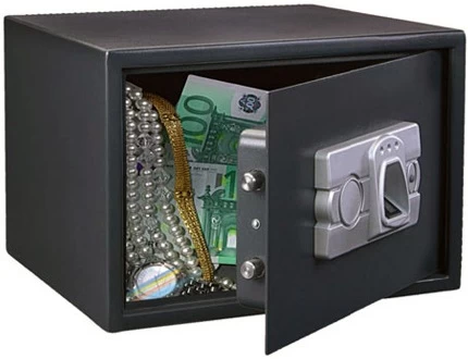 Основное достоинство данного сейфа – оптический сенсор, позволяющий использовать для запирания отпечаток пальца. Эта система исключительно надёжна и проста в использовании. Память замка позволяет сканировать до 255 отпечатков. К замку прилагается аварийный мастер-ключ, позволяющий открыть сейф в экстренных обстоятельствах.